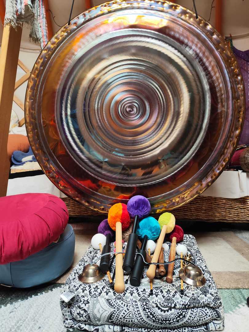 Warm ankommen, Raunachts-Getränk, ein kurzer Atemmoment – und dann vier Stunden Gongklang für Loslassen & Neubeginn.